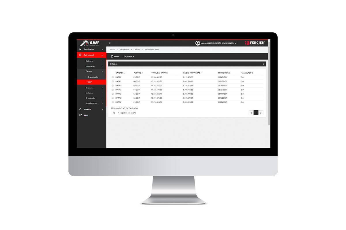 - Geração de arquivos & relatórios fiscais CIAP, PIS/COFINS, Sped, Bloco “G”, “F” e Razão Auxiliar das Subcontas (RAS);