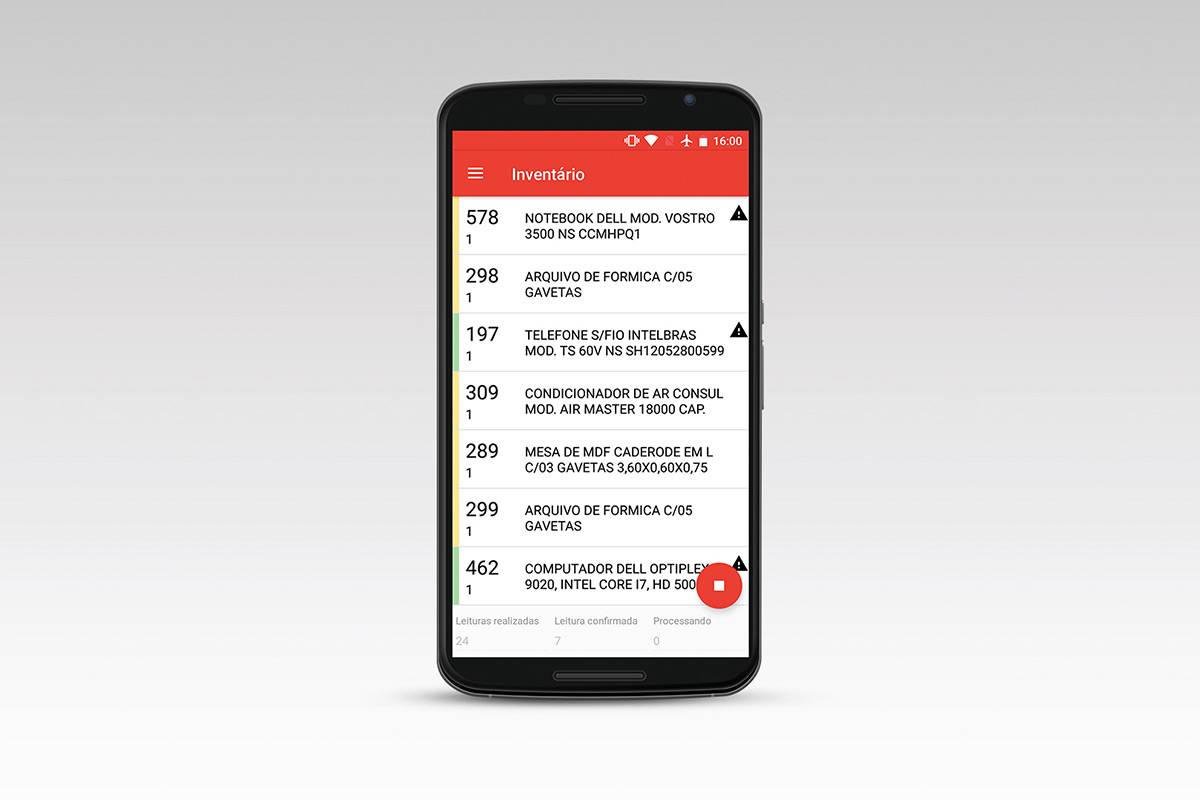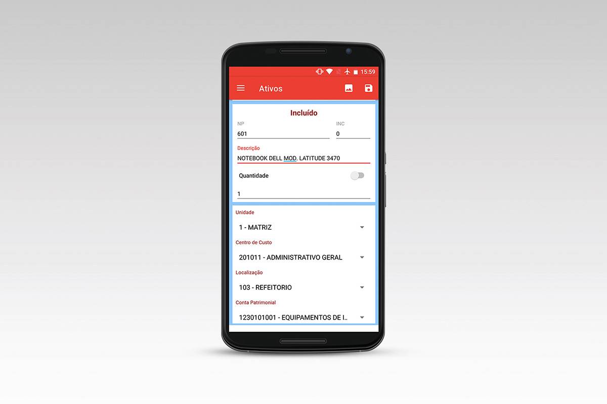 - Leitura de etiquetas com código de barras e tag’s RFID fixadas os ativos sem o contato visual, ou seja, não é necessária a leitura por laser scanner do código de barras, comumente utilizado nas etiquetas de patrimônio;